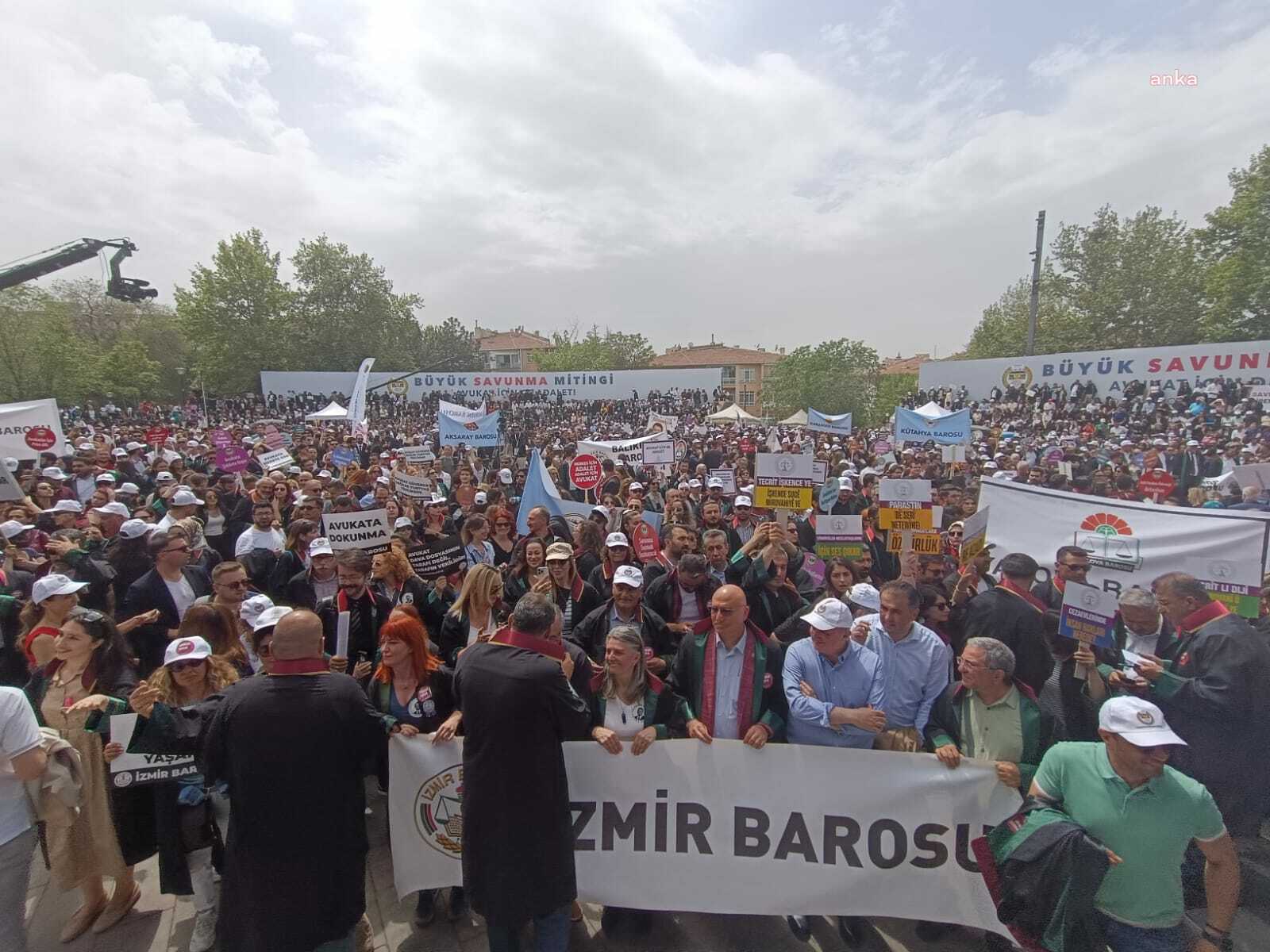 Türkiye Barolar Birliği (TBB) ve barolar öncülüğünde avukatlar Anıtpark’ta “Büyük Savunma Mitingi” düzenledi. Binlerce avukatın kaldığı mitingde konuşan TBB Başkanı Erinç Sağkan, “Biz hukuk devleti diye haykırırken kanun devleti bile olmaktan uzaklaşılıyor, anayasasızlaşmaya doğru yol alınıyor. Ülkemizde bağımsız yargının, adil yargılanma hakkının, hukukun üstünlüğünün en güçlü savunucusu her zaman biz avukatlar olduk. Yine bugün de hukuk devleti için, yargı bağımsızlığını savunmak için buradayız” dedi. Mitinge Ankara Büyükşehir Belediye Başkanı Avukat Mansur Yavaş da desteklerini sundu ve “Ülkede en çok ihtiyacımız olan adalete olan inancınız bizi ayakta tutuyor. Sığınacağımız tek şey adalet” ifadelerini kullandı.