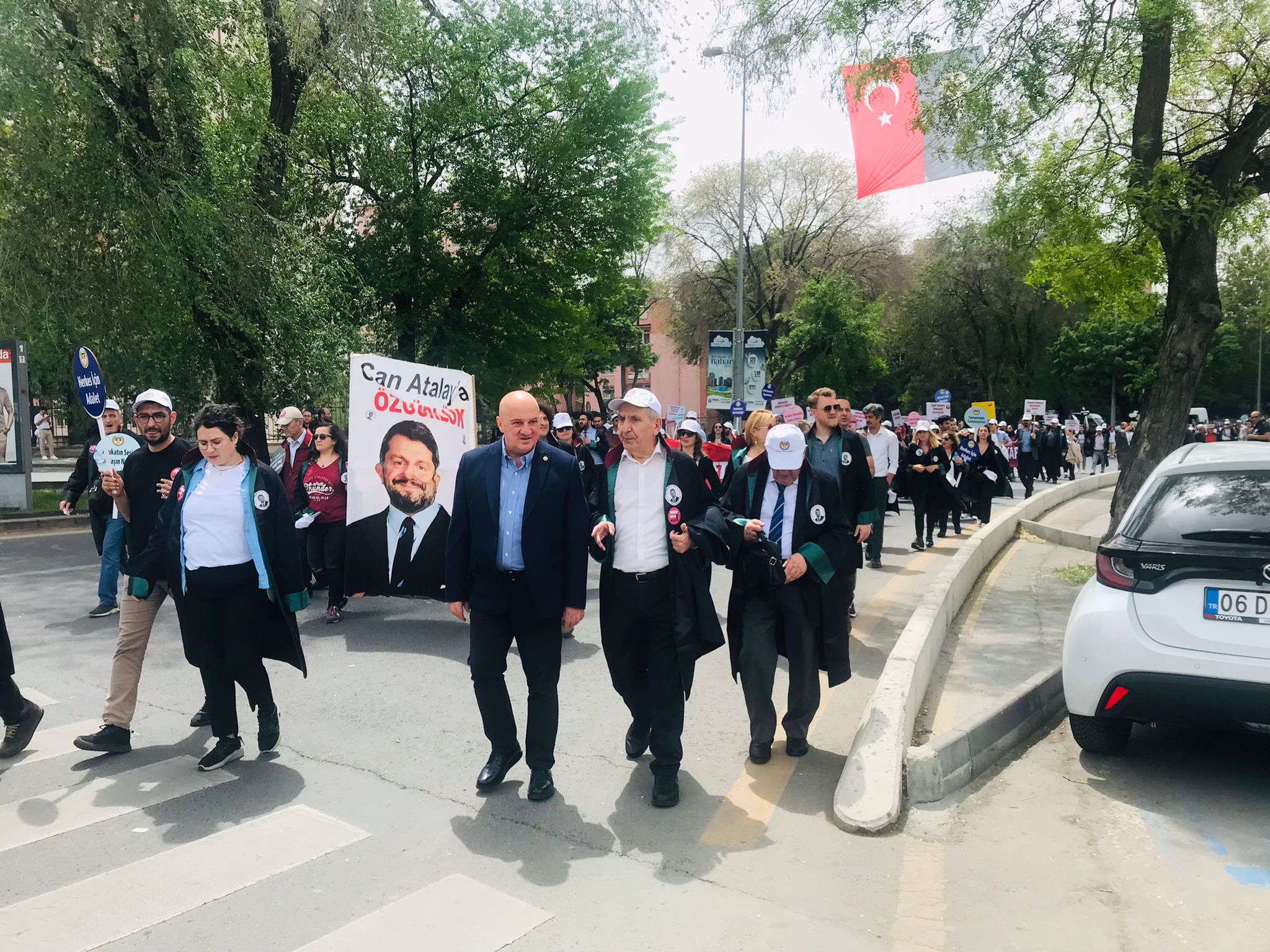 Mitinge gelerek avukatlara desteklerini sunan Ankara Büyükşehir Belediye Başkanı Mansur Yavaş, “Ülkede en çok ihtiyacımız olan adalete olan inancınız bizi ayakta tutuyor. Sığınacağımız tek şey adalet. Bu mücadelenizi sonuna kadar desteklediğimi ifade etmek isterim” dedi.
