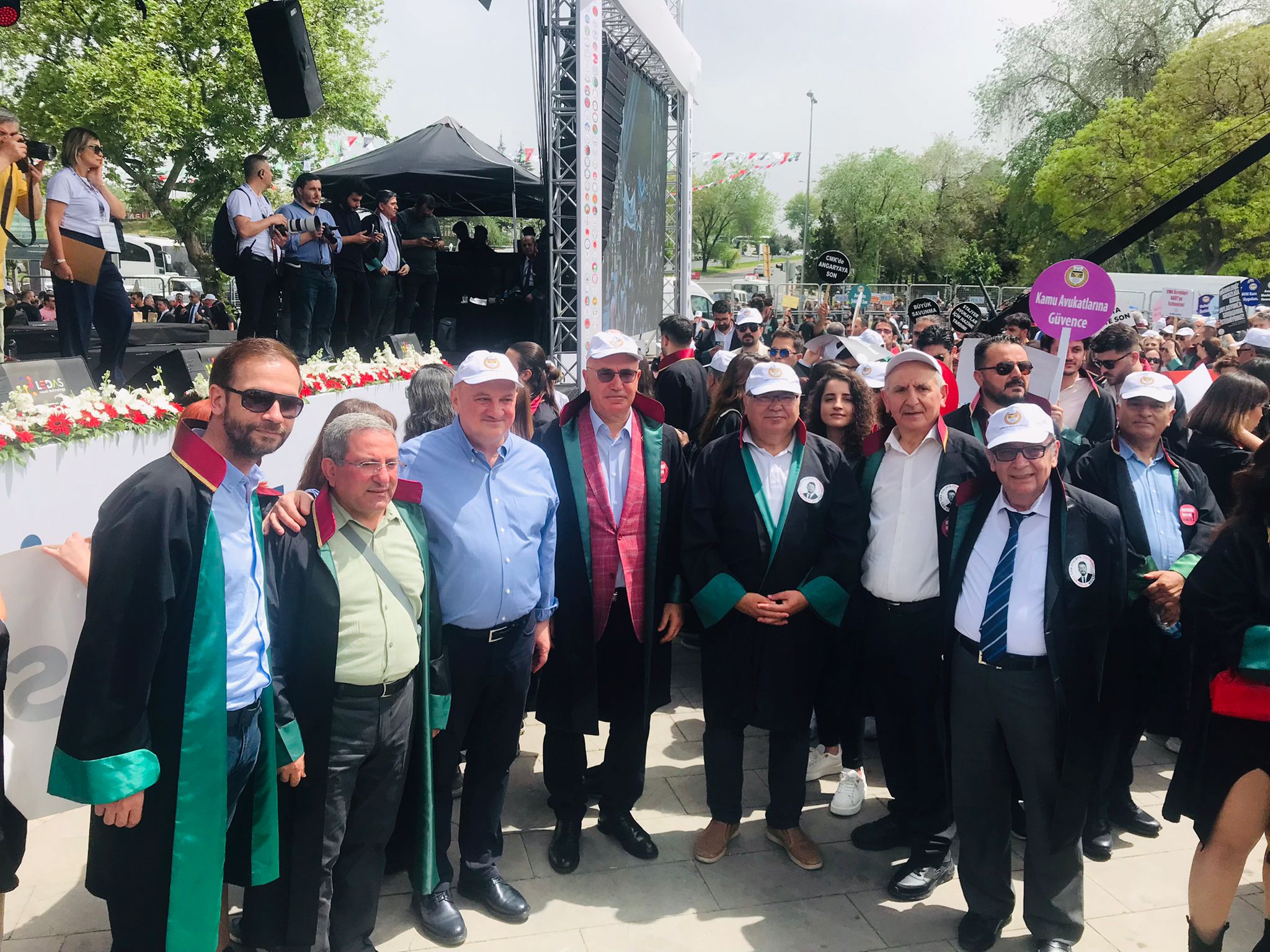 Ülkemizde bağımsız yargının, adil yargılanma hakkının, hukukun üstünlüğünün en güçlü savunucusu her zaman biz avukatlar olduk. Yine bugün de hukuk devleti için, yargı bağımsızlığını savunmak için buradayız.”